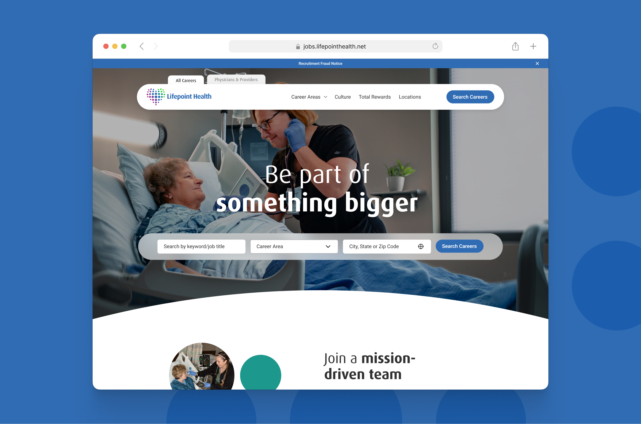 Lifepoint Health, a leading healthcare organization with 140+ facilities nationwide, needed a modern, unified career site that reflected its most authentic culture. We set out to create a more streamlined and inspiring destination that showcased their employer brand while simplifying the path to apply.